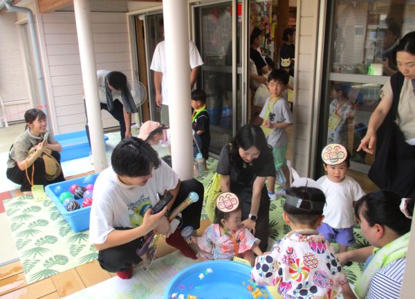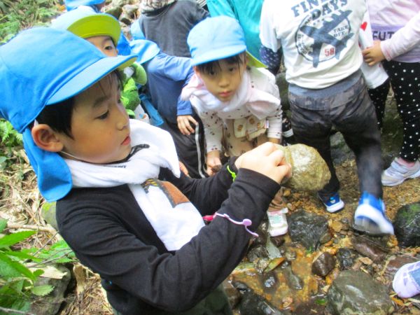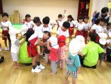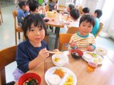 年少組が玉ねぎの皮を剥き、年中組がピーラーで皮をむいて年長組が包丁で切りました。出来上がったカレーはいろんな大きさの野菜がごろごろ入っていて、いつもよりおいしく感じました。
