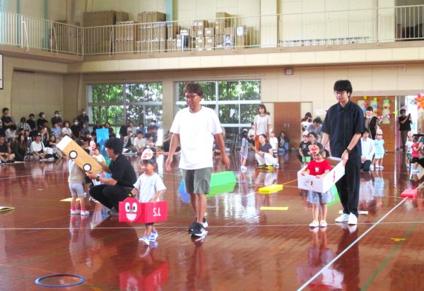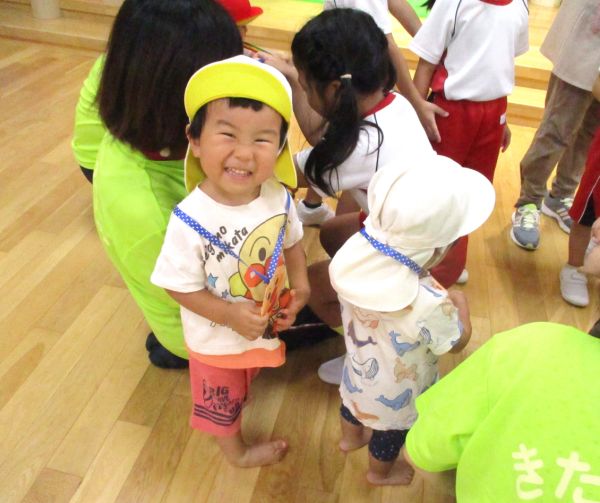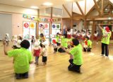 大好きな年長さんに「ありがとう」を伝える会を開きました。歌やお遊戯、劇などを披露して、最後に心のこもったプレゼントを渡しました。給食は、年長さんのリクエストメニューでした。